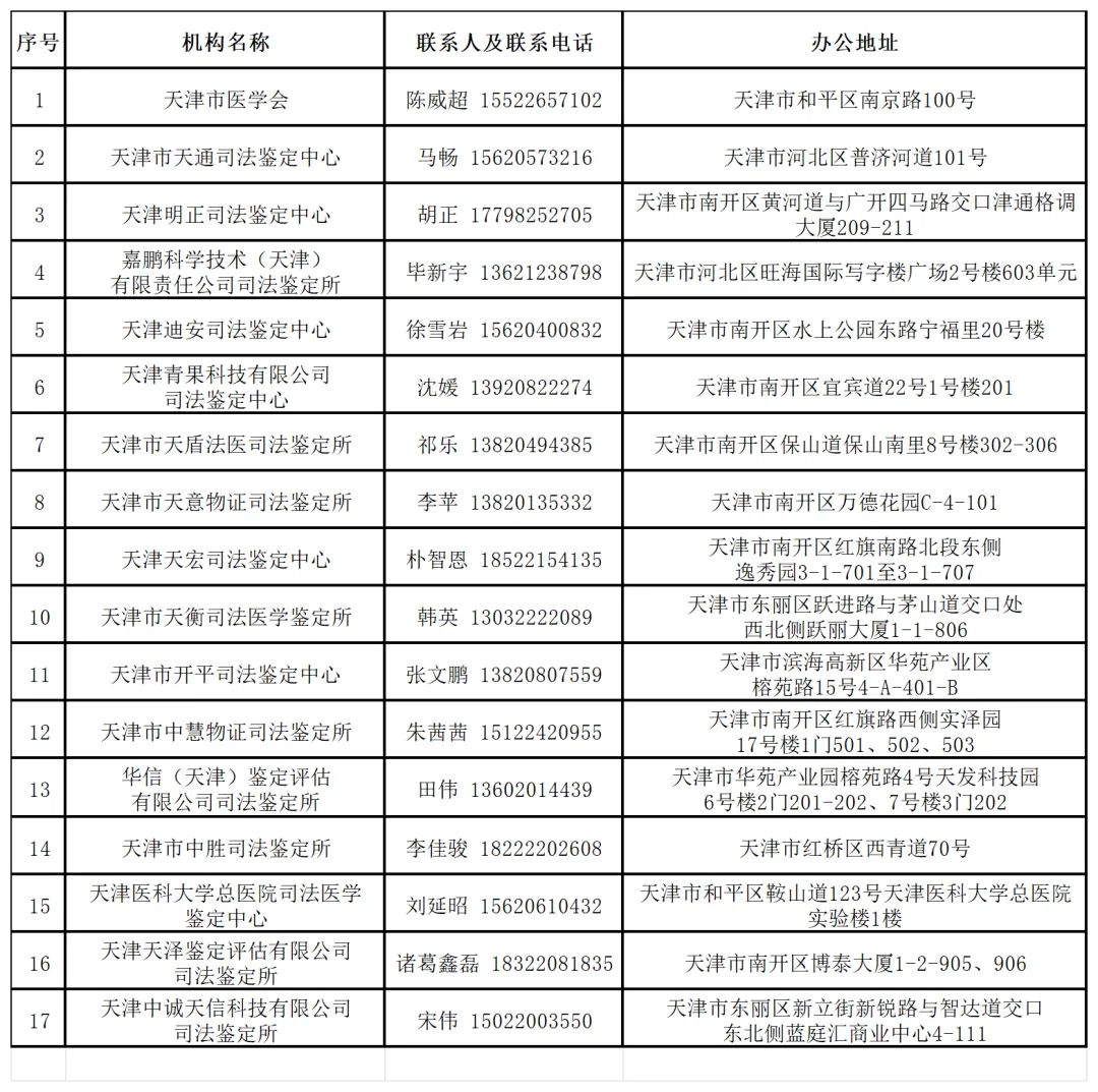 2024年天津法院建設(shè)工程造價、建設(shè)工程質(zhì)量、資產(chǎn)評估、會計(jì)審計(jì)、醫(yī)療損害鑒定評估機(jī)構(gòu)名錄